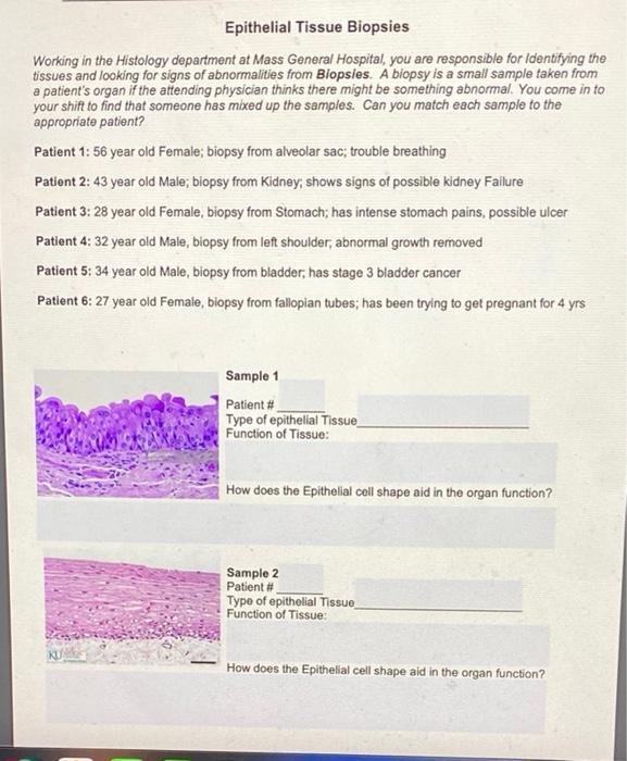 Epithelial Tissue Worksheet Answers Key | Exercises Histology Apr 20, 2021 ... Download Epithelial Tissue Worksheet Answers Key and more Histology Exercises in PDF only on Docsity! Chapter 4 – Histology (Tissues) Name: ...