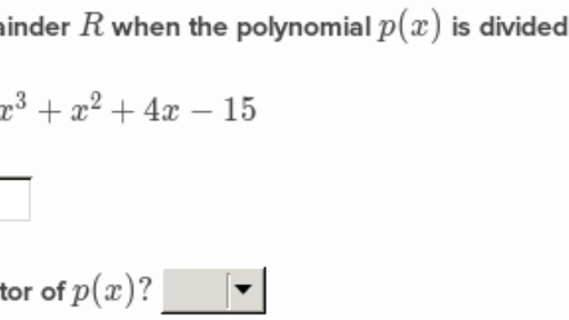Remainder theorem (practice) | Khan Academy Math Algebra 2 Polynomial division Polynomial Remainder Theorem. Intro to the Polynomial Remainder Theorem. Remainder theorem: finding remainder from equation. Remainder theorem examples. Practice: Remainder theorem. Remainder theorem: checking factors. Remainder theorem: finding coefficients. Practice: Remainder theorem and factors.