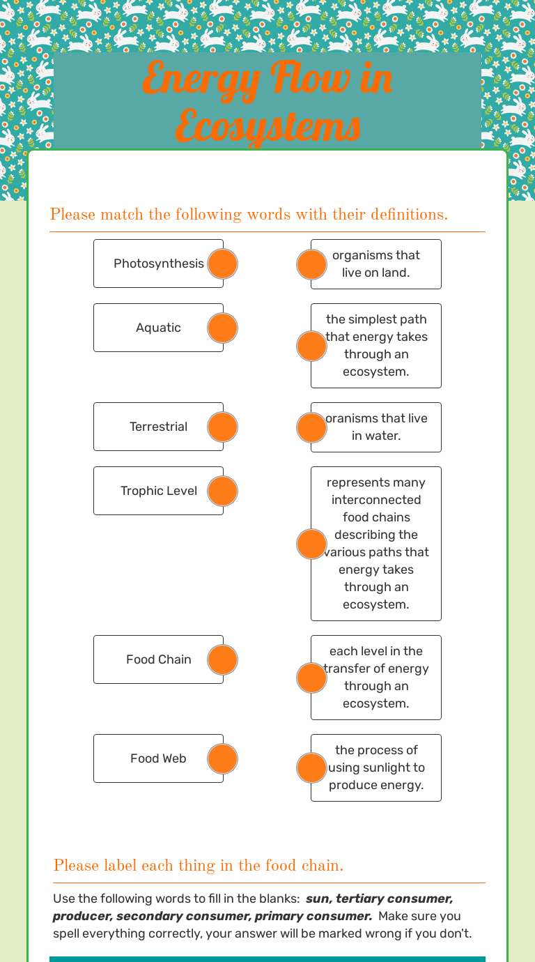 Energy flow worksheet answers. Bubbl.us - Create Mind Maps | Collaborate and Present Ideas The EASIEST way to mind map. Bubbl.us makes it easy to organize your ideas visually in a way that makes sense to you and others. Our editor is designed to help you stay on task and capture your thoughts quickly.. Thousands of people use Bubbl.us daily to take notes, brainstorm new ideas, collaborate, and present more effectively. Teaching Tools | Resources for Teachers from Scholastic Book List. Favorite Snow and Snowmen Stories to Celebrate the Joys of Winter. Grades PreK - 4 Voltage, Current, and Resistance Worksheet - Basic Electricity Notes: This question is not as easy to answer as it may first appear. Certainly, electric current is defined as the “flow” of electrons, but how do electrons “flow” through a solid material such as copper? How does anything flow through a solid material, for that matter?. Many scientific disciplines challenge our “common sense” ideas of reality, including the seemingly solid nature ... Nature Definition & Meaning | Dictionary.com Nature definition, the material world, especially as surrounding humankind and existing independently of human activities. See more.