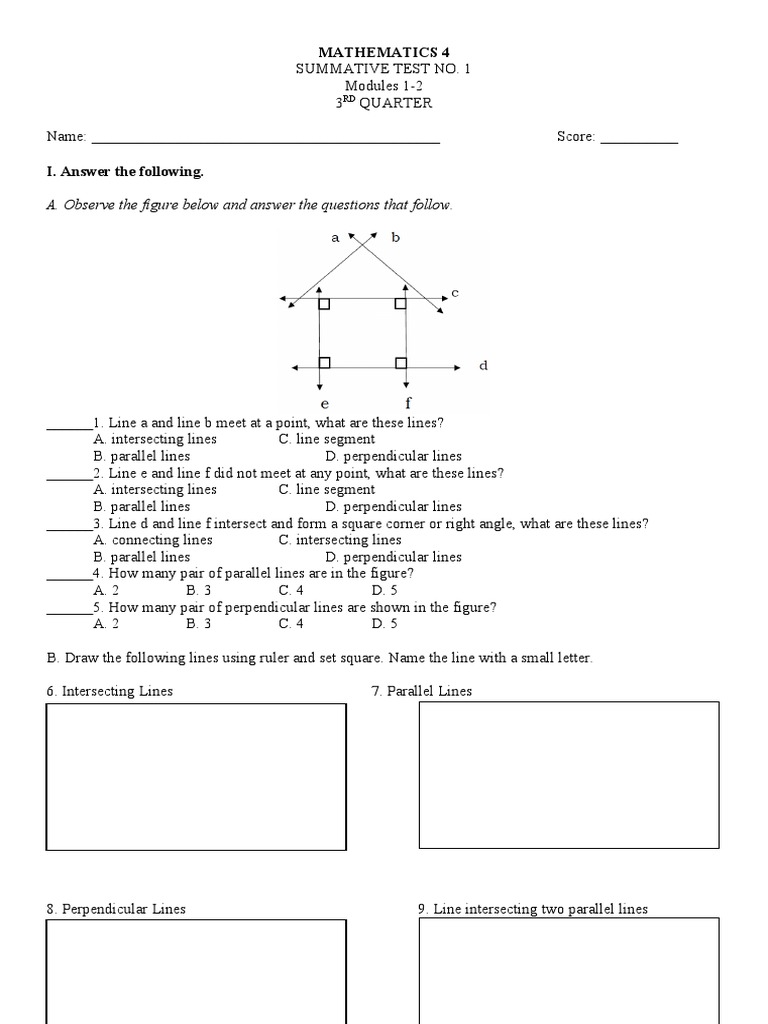 Parallel, Intersecting and Perpendicular Lines worksheet ID: 531146 Language: English School subject: Math Grade/level: grade 4 Age: 7-16 Main content: Types of lines in math Other contents: Parallel, Intersecting and Perpendicular Lines, angles Add to my workbooks (49) Embed in my website or blog Add to Google Classroom