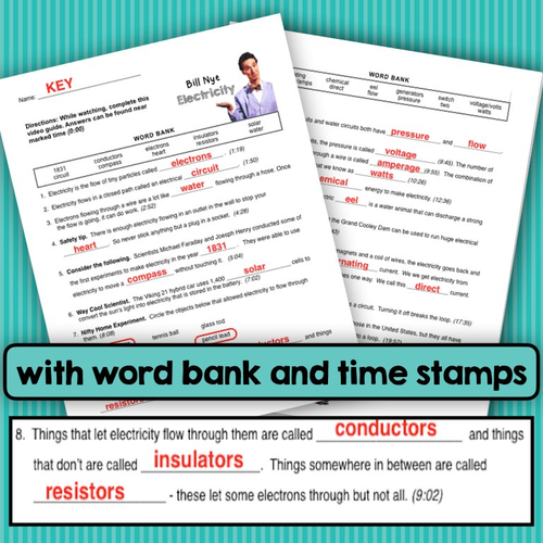 Bill Nye Video Questions - ELECTRICITY - w/ time stamp, word ...