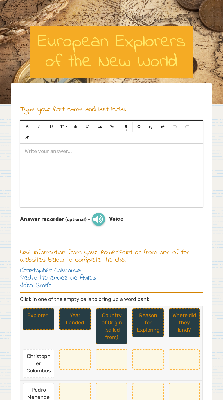 Explorers come to the new world worksheet answers
