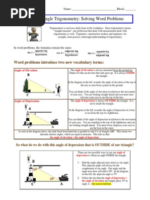 Toondoo.com Nov 11, 2019 · On November 11, 2019, we became aware that an unknown third party gained an unauthorized access to Toondoo.com which resulted in a security breach.We currently believe that this breach occurred on August 21, 2019. Using Trigonometric Ratios Answer Key.pdf 7 CL. Jo. ما. Page 2. What's green and loud? Solve the following word problems. Draw a picture then write a trigonometric ratio to solve the problem. Solve the ... 1. A boy flying a kite lets out 300 feet of string which makes an angle ... Trig Word Problems Worksheet. 1. A boy flying a kite lets out 300 feet of string which makes an angle of 38° with the ground. Assuming.