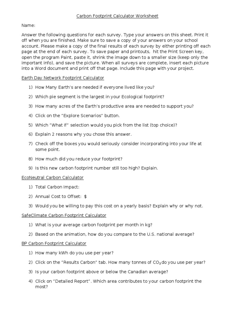 Calculate carbon footprint worksheet