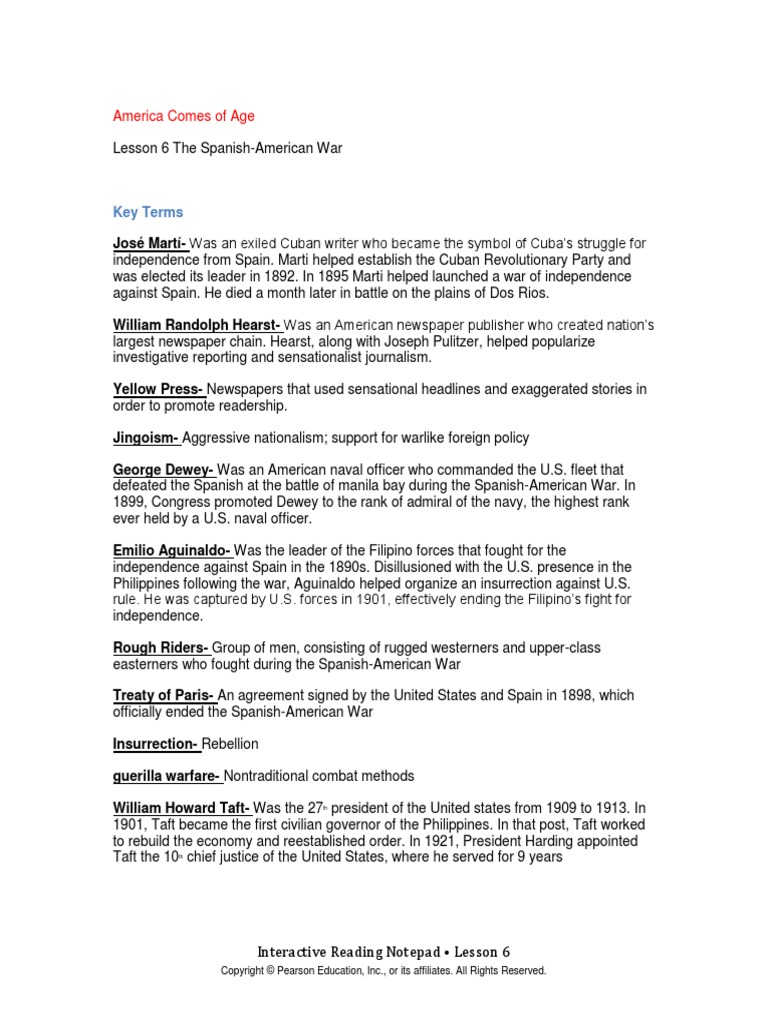 The spanish american war worksheet answers