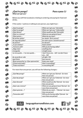 Spanish Phrases for the Restaurant & Eating Out: Lesson Plan ...