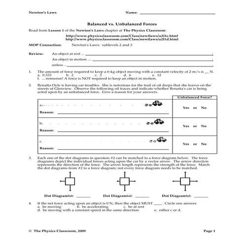 University Physics Volume1-OP. Rimit Haque. Continue Reading ... Because it's always important toBalanced vs. Unbalanced Forces The Balanced vs. Unbalanced Forces Concept Builder is a tool that allows the learner to relate kinematic information regarding the motion of an object to the relative strength of the forces acting upon the object. There are 12 different situations to analyze and three ability levels. A particle starts from a point with position vector ( 5 + 8 ... A cheetah can run from 0 to 70 mph in 2.2 seconds. a.Electronics Worksheet Chapter 13: Forces, Vectors and Moments Worksheet Chapter 14: Gravitational Field Worksheet Chapter 15: Ideal Gas Worksheet Chapter 16: Kinematics Motion Worksheet Chapter 17: Kirchhoff's Laws Worksheet Chapter 18: Matter and Materials Worksheet Chapter 19: Mechanics ...