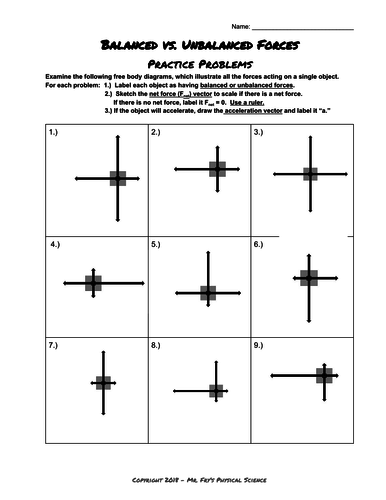Balanced vs. Unbalanced Forces - Physics Classroom Balanced vs. Unbalanced Forces The Balanced vs. Unbalanced Forces Concept Builder is a tool that allows the learner to relate kinematic information regarding the motion of an object to the relative strength of the forces acting upon the object. There are 12 different situations to analyze and three ability levels.