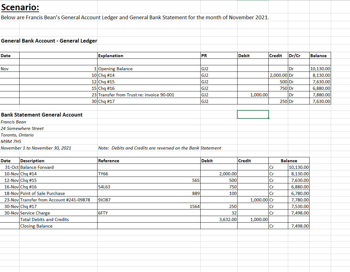 Bank Reconciliation Exercises and Answers Free Downloads Here are bank reconciliation exercises and answers in printable PDF format and in Excel. These are free to use by individuals, teachers and students, small business owners and bookkeepers, and anyone else who is interested. Use these exercises to practice working on bank reconciliation problems and solutions.