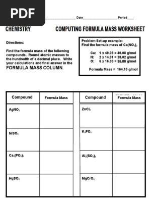 Chemistry computing formula mass worksheet