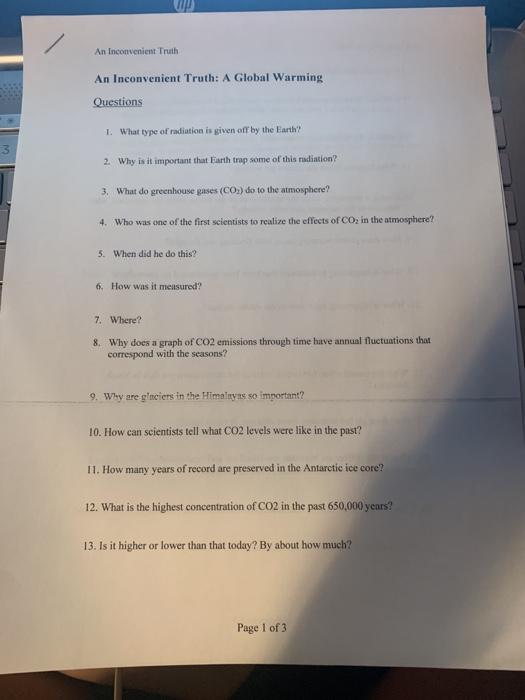 An Inconvenient Truth Worksheet | PDF | Atmosphere Of Earth - Scribd An Inconvenient Truth Worksheet - Free download as Word Doc (.doc), PDF File (.pdf), Text File (.txt) or read online for free. doco