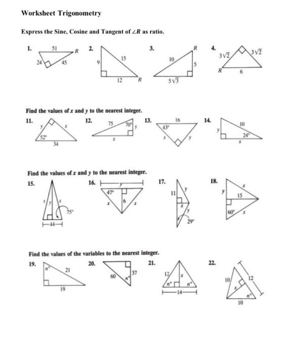 Trigonometry Worksheets with Answers | Maths worksheets KS3 and KS4 Trigonometry Worksheets. Trigonometry is a mathematical method used to define relations between elements of a triangle. Our maths trigonometry worksheets with answers will help your child or student to grasp and understand basic and more advanced ways of solving trigonometric equations. Our comprehensive resources include Pythagoras ... Trigonometric ratios - Liveworksheets ID: 2067483 Language: English School subject: Math Grade/level: GRADE 3 Age: 13-15 Main content: Trigonometry Other contents: TRIGONOMETRIC RATAIOS Add to my workbooks (4) Download file pdf Embed in my website or blog Add to Google Classroom 10++ Trigonometry Word Problems Worksheet With Answers Pdf Inverse trigonometric ratios worksheet answers briefencounters.ca. Contains 6 Word Issues That Use The Soh, Cah, Toa Ratios. Worksheet area maths worksheets printable triangles key triangle. Basics trigonometry problems and answers pdf for grade 10 . Angle of elevation from man to the plane angle 2: Trigonometric Ratios Worksheet Answers - tunxis.commnet.edu takes the torture out of trigonometry, explaining basic concepts in plain English and offering lots of easy-to-grasp example problems. It also explains the "why" of trigonometry, using real-world examples that Page 1/9 December, 06 2022 Trigonometric Ratios Worksheet Answers