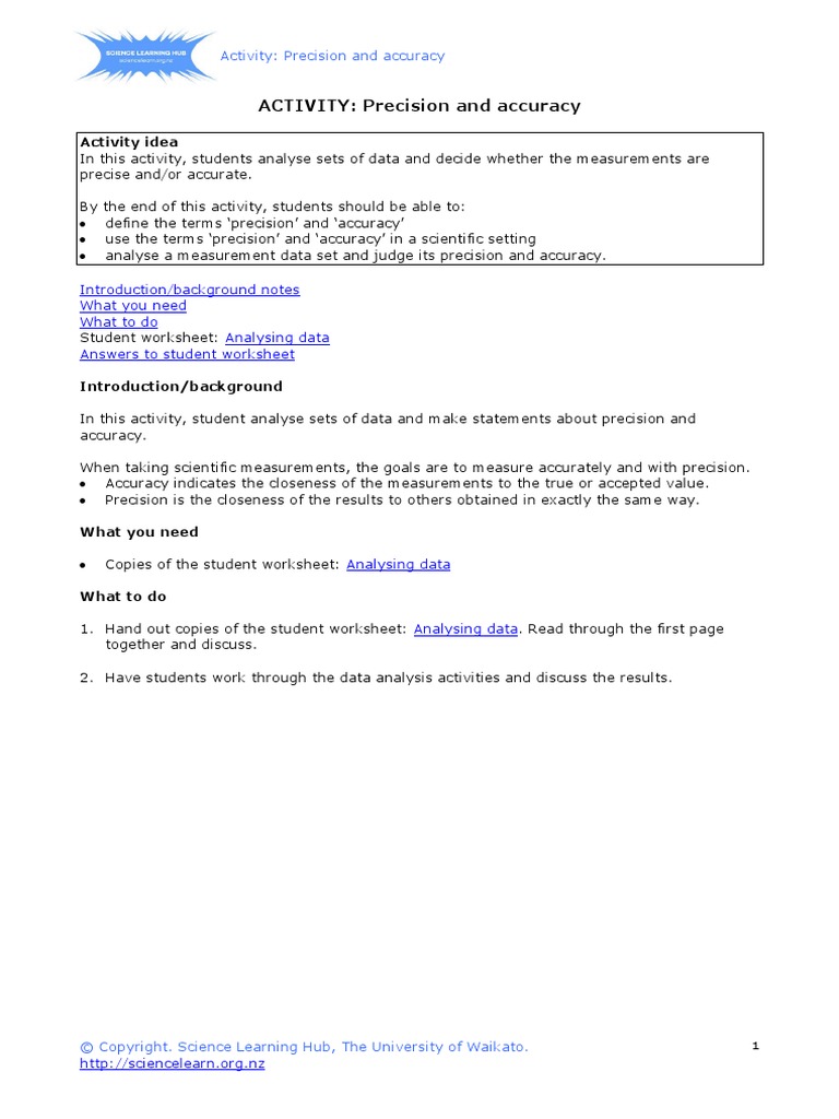 Accuracy vs precision worksheet answers