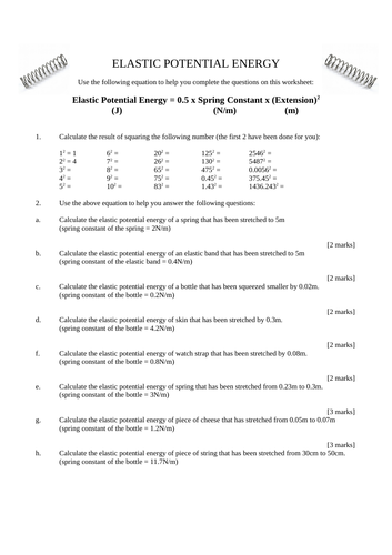 Calculating potential energy worksheet (pdf ... The calculating potential energy worksheet is a math practice sheet that incorporates application, reflection, assessment, and problem-solving with a challenge to aid students in creating and resolving their word problems. This activity will assist students in understanding the lecture, applying new knowledge, and utilizing prior knowledge. ...