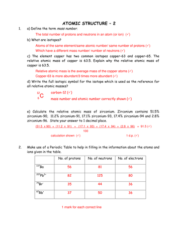 Isotopes worksheet high school chemistry