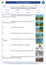 Ecosystems worksheets and online exercises Live worksheets > English > Natural Science > Ecosystems. Ecosystems worksheets and online exercises. Language: English Subject: Natural Science. Ecosystem Quiz. Grade/level: Grade 5. by escolacanserra. Components of an Ecosystem. Grade/level: 6th Grade - IP Cristo Rey. by brandonmp.